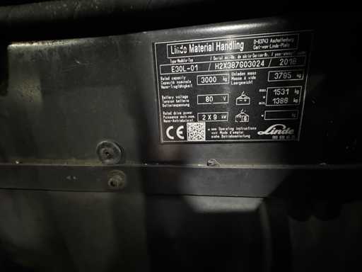 Entretien 2016 + UVV 10/2026 Linde E30L 3.000kg EVO Triplex 3.+4.