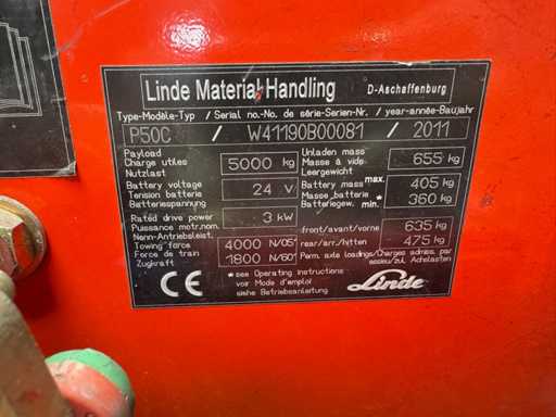 Entretien 2023 + UVV 06/2026 Linde P50C 5.000 kg tracteur tracteur véhicule Tracteur 2.633 heures batterie 500 Ah