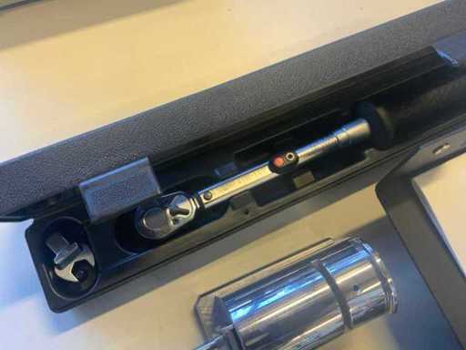 notamment : 1 micromètre Mitutoyo sur trépied, 1 manomètre d’épaisseur numérique, 1 instrument thermocouple et 1 clé dynamométrique Hazel, type : 6110-1CT