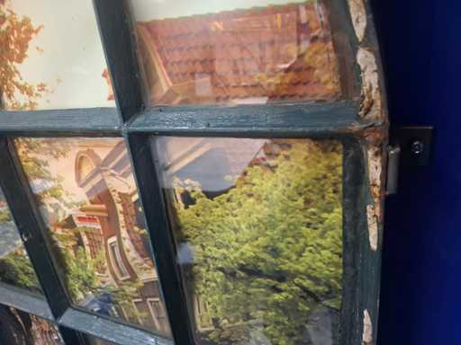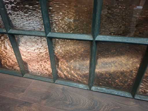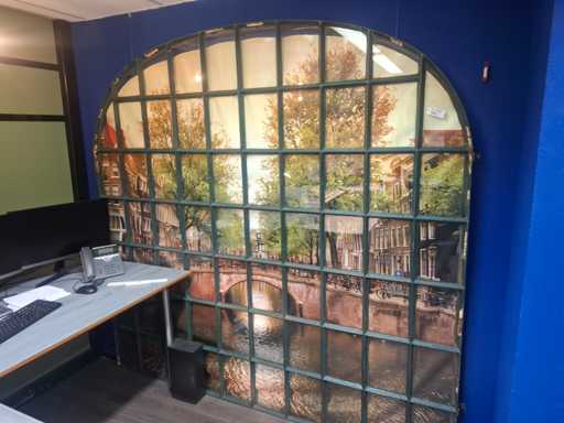 Ancienne fenêtre avec douves en toile déco, pièce unique en verre Dimensions : env 212x218 cm