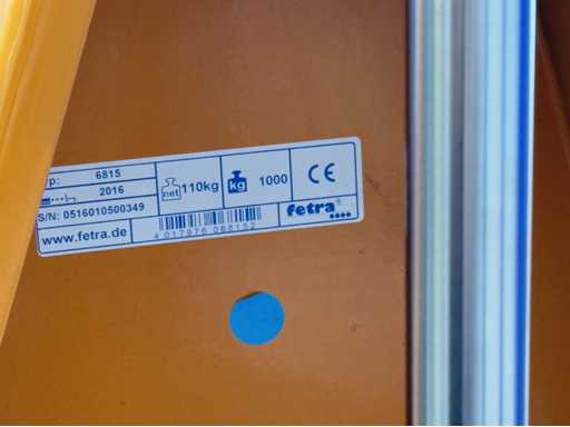 Année de fabrication 2016, capacité de charge : 1000 kg, type : 6815, avec dispositif anti-basculement. Pour plus de détails, voir les photos des plaques signalétiques