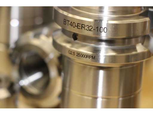 4 UNITÉS/ENSEMBLES DE ATT0008 COMPRESSÉS ENSEMBLE. UN SEUL ATT0008 CORRESPOND À : Cones porte-outils BT40-ER32-100, équilibrés jusqu’à 25 000 tr/min. Un ensemble nouvellement emballé de 5 pièces, chacune lubrifiée et scellée dans des sacs individuels.
