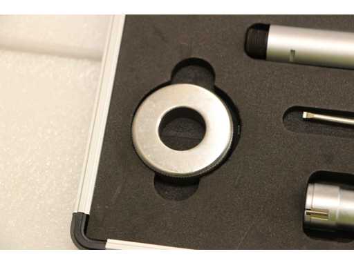 Micromètre à trois points pour des mesures internes de 20 à 25 mm. Diamètre 17 mm, profondeur jusqu’à 85 mm, hauteur des pointes de mesure 8,8 mm. Bague d’étalonnage de 20 mm incluse. Précision 4 um, résolution 0,005 mm. Certificat inclus
