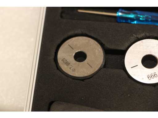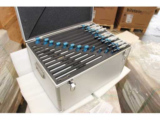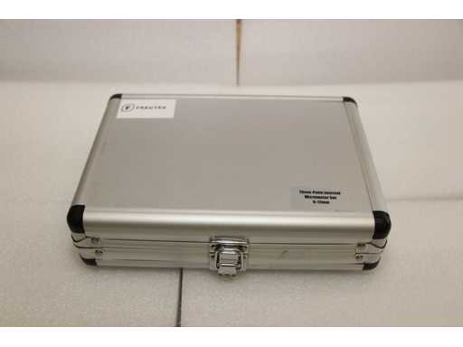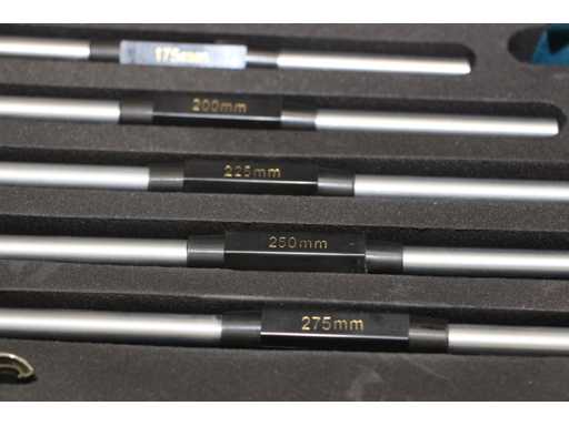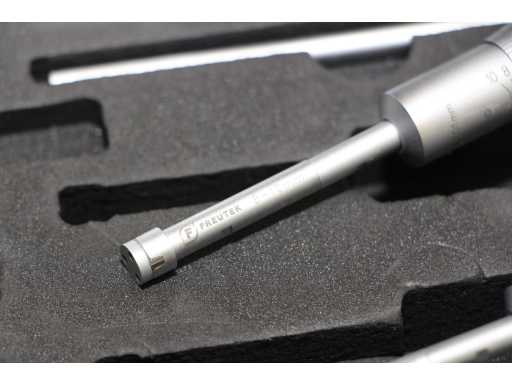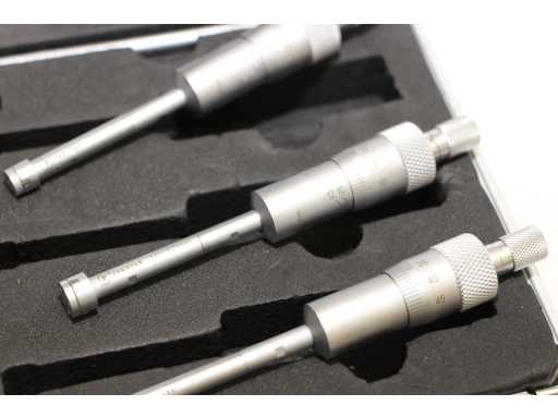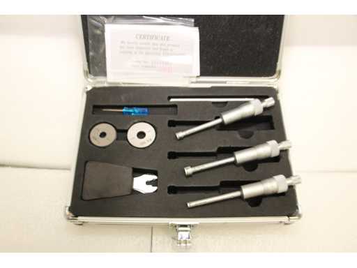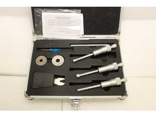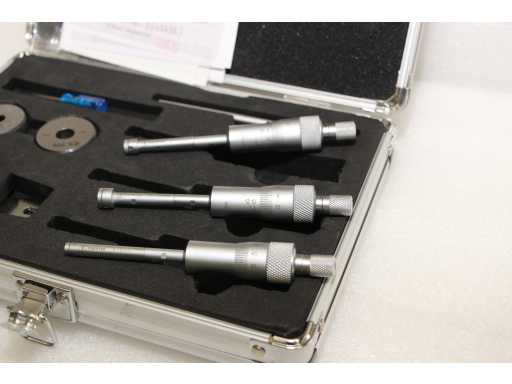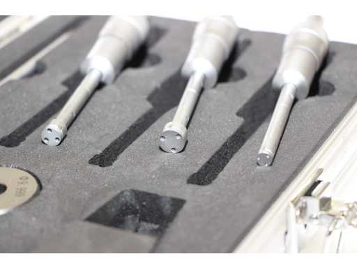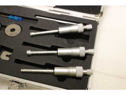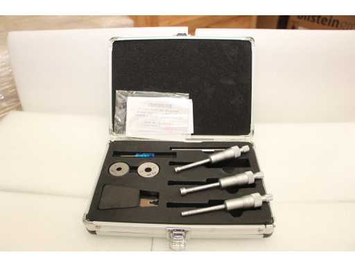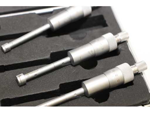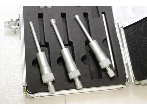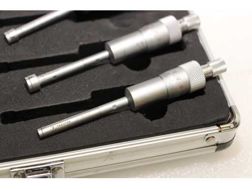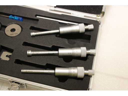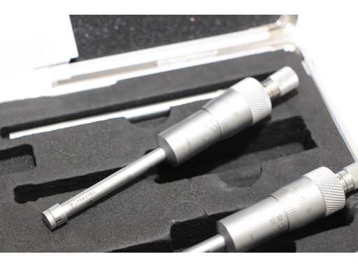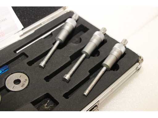 Ensemble composé de 3 millièmes micromètres internes à trois points pour des mesures de 6 à 12 mm. Mesures : 6-8 mm ; 8-10 mm ; 10-12 mm. 2 anneaux de calibration inclus, diamètre 8 et 10 mm. Diamètre de la tige 5,8 mm, profondeur maximale 100 mm. Certificat inclus