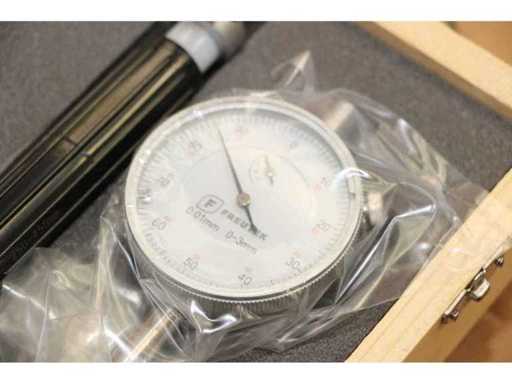 Jauge d’alésage complet avec indicateur, rallonges et enclume.