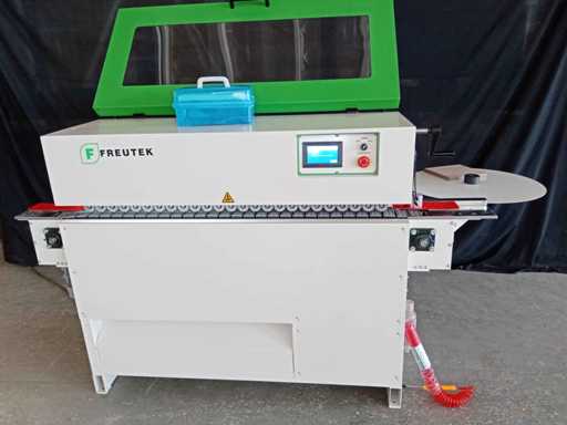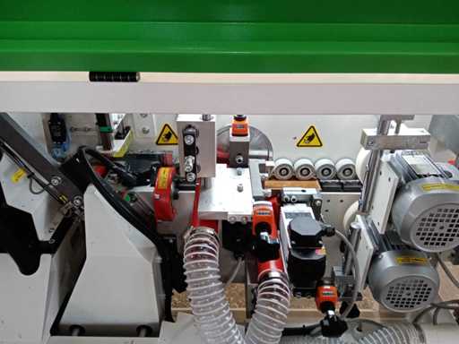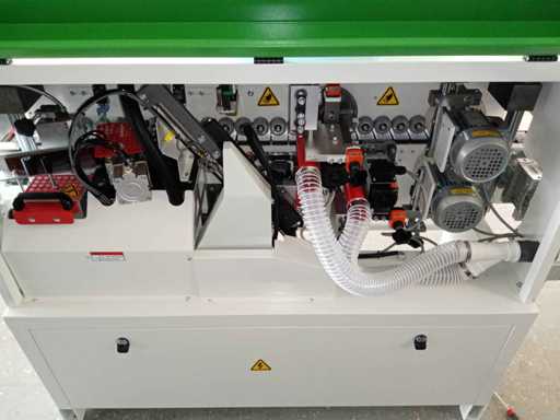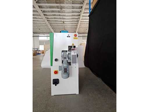 Bain à colle chaude pour l’application des bords sur les panneaux linéaires et les panneaux formés - Moteur principal 3,95 kW - Protection contre les brûlures accidentelles - Guide de bord réglable en hauteur - Rouleau pré-ruban en caoutchouc - Double grattoir plat de chaque côté du panneau - Collecteur de bord - Épaisseur du bord 0,8 - 2 mm - Épaisseur minimale/maximale du panneau 12/43 mm - Vitesse de fonctionnement : 7 m/