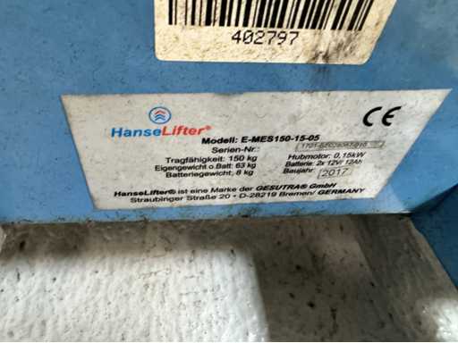 HANSELIFTER E-MES150-15 3 Élévateur de matériaux / Plate-forme