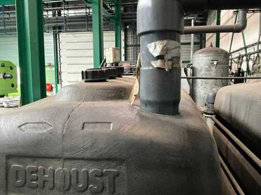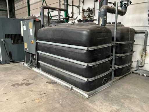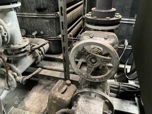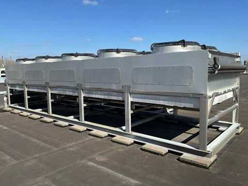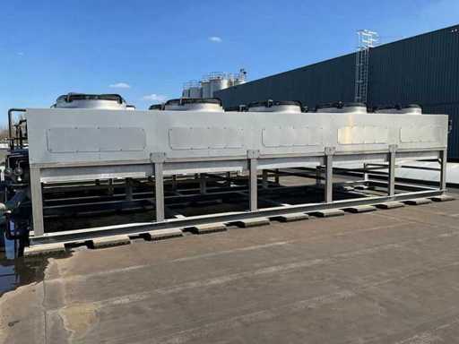 Composé d’une unité de pompe à eau de refroidissement, équipée de 2 réservoirs d’eau de refroidissement de 3000 litres, de 2 pompes de circulation, d’une boîte de contrôle, d’une surface au sol de 3800x2500 mm, d’un condenseur sur le toit, équipée d’un ventilateur de 10x, de taille condenseur (LxLxH) 9000x2550x2200 mm, veuillez noter ! Récupération sur rendez-vous, tuyauterie non incluse, le réfrigérant a déjà été vidé