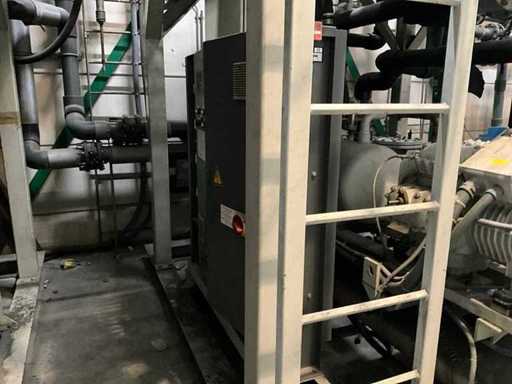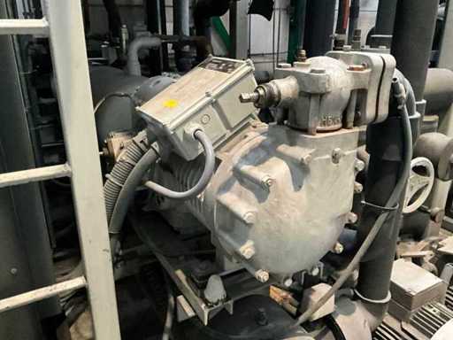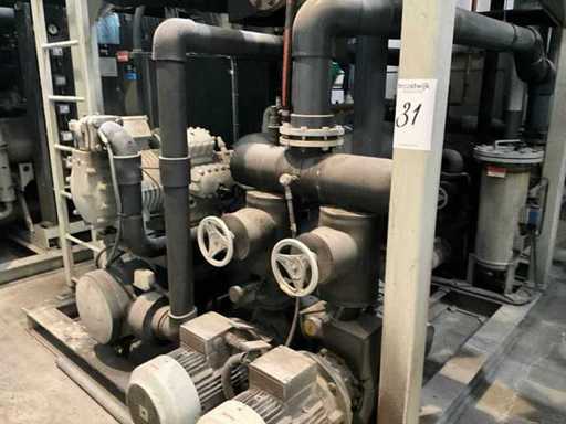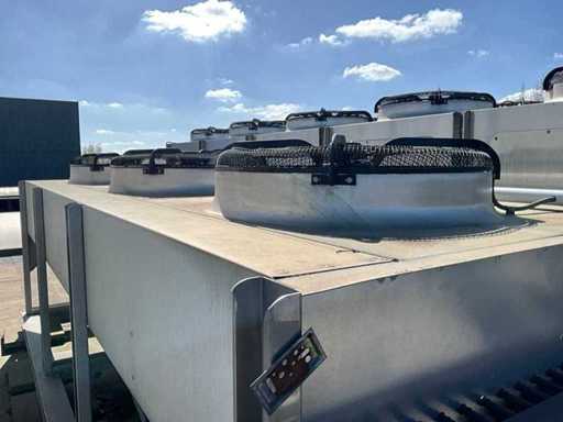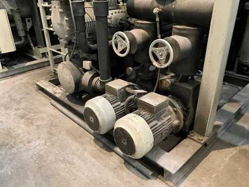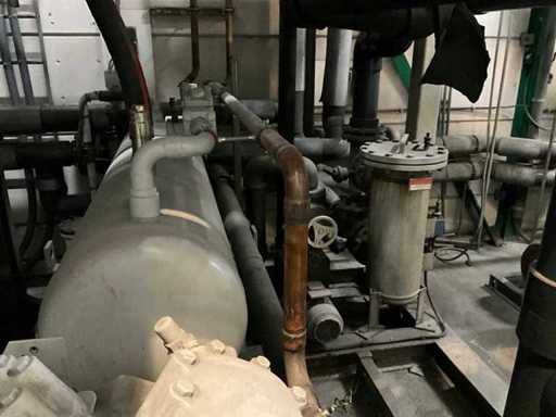 comprenant 1 unité de refroidissement par eau de refroidissement, équipée d’un compresseur de refroidissement « DWM Copeland », 2 réservoirs d’eau de refroidissement, 2 pompes de circulation, boîte de contrôle, surface au sol 2700x2400 mm, 1x condenseur sur le toit, équipé de 3 ventilateurs, condenseur de taille (LxLxH) 5000x1700x1700 mm, veuillez noter ! Récupération sur rendez-vous, tuyauterie non incluse, le réfrigérant a déjà été vidé