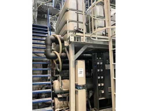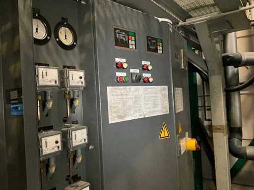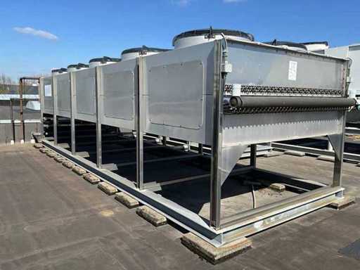 Composé d’une unité de pompe à eau de refroidissement, équipée de 2 compresseurs de refroidissement DWM Copeland, de 3 réservoirs d’eau de refroidissement, de pompes de circulation, d’une boîte de contrôle, d’une surface au sol de 4100x2400 mm, d’un condenseur sur le toit, équipée d’un ventilateur de 10x, de taille condensateur (LxLxH) 8100x2500x2200 mm, veuillez noter ! Récupérer sur rendez-vous, la tuyauterie vers le condenseur n’est pas incluse, le réfrigérant a déjà été évacué