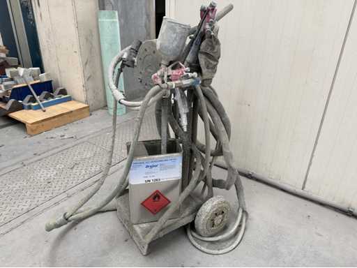 deux pistolets à pulvérisation, équipés de pompe et de tuyaux ; y compris le chariot ; voir les photos pour plus de détails