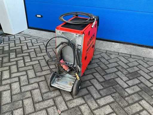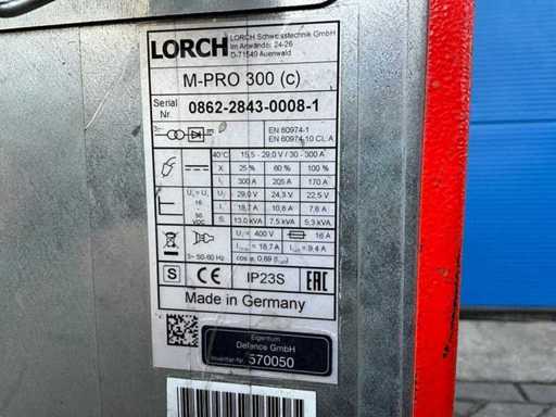 Machine à souder MIG LORCH M300 PRO ; numéro de série 0862-2843-0008-1 ; version MIG ; charge maximale d’ampère 300 A ; équipée d’un alimentateur à fil ; connexion 380 V.
