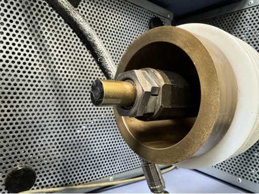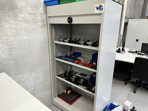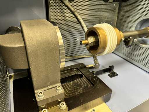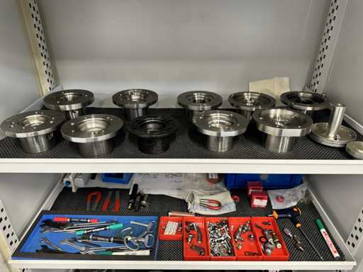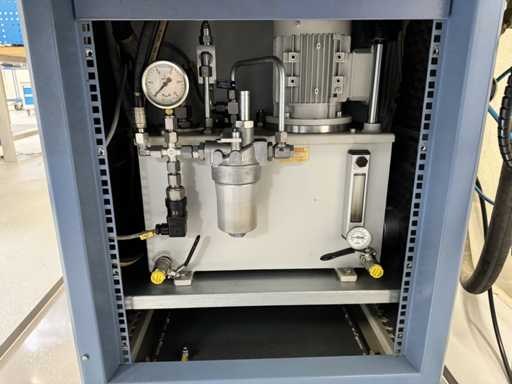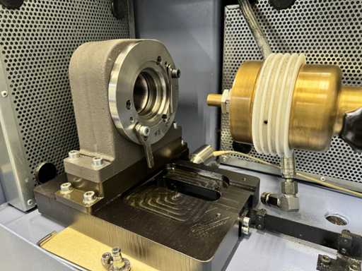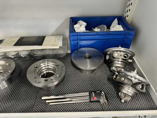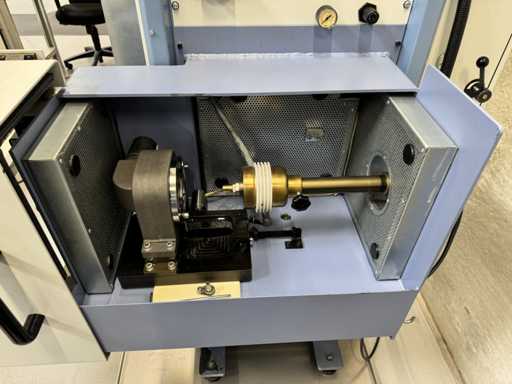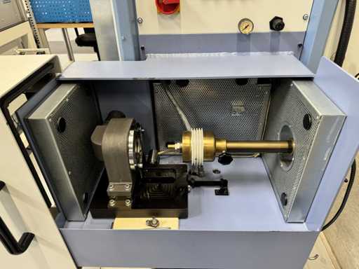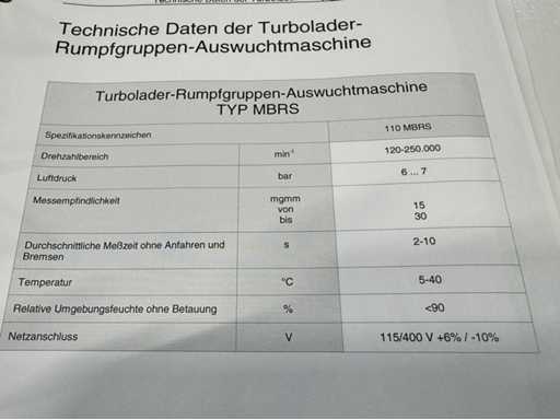 Machine d’équilibrage spéciale conçue pour l’équilibrage des turbocompresseurs (compensation du déséquilibre statique ; Plage de vitesse : 120- 250000 min⁻¹ ; Pression d’air : 6-7bar ; Alimentation : 400V ; Temps moyen de mesure sans démarrage ni freinage : 2-10 secondes ; Température : 5 - 40 °C ; y compris armoire avec adaptateurs et outils à main ; Pour plus de détails, voir les photos ;