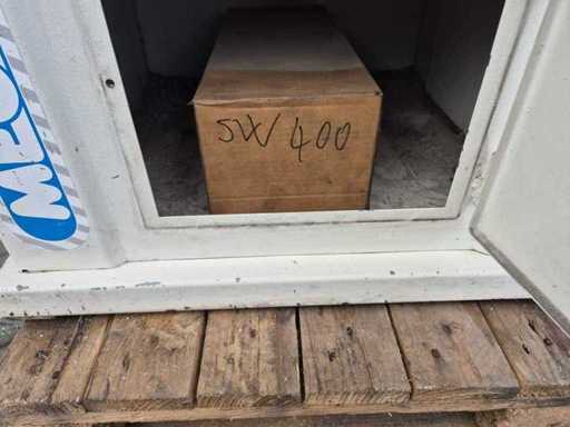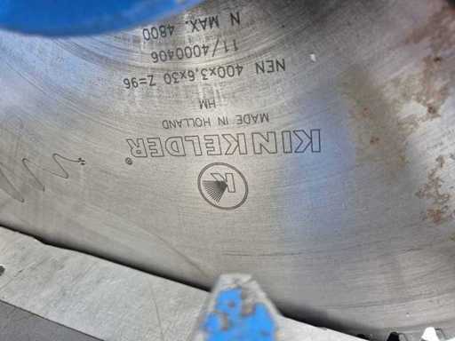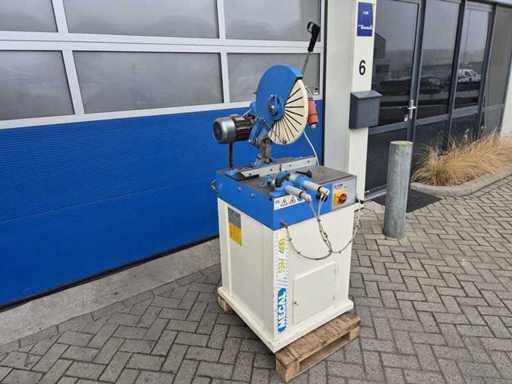 Le Mecal 400 SW a déjà été démonté. Équipé d’un convoyeur à rouleaux MPS de 2x6 mètres équipé d’un système de mesure automatique, d’une lame de scie de 400 mm, d’une lubrification par brume et d’une pince pneumatique pour machine. La machine propose un onglet double face avec verrouillage à 90°, 45°, 30° et 15°, tandis que l’axe vertical peut être incliné jusqu’à 45°. Le moteur électrique est alimenté par un moteur électrique de 2,2 kW à 380 volts.