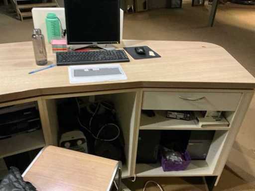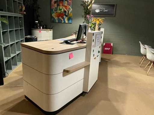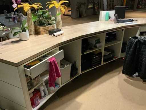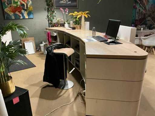 Long plan de travail, meuble ovale avec le même aspect et le même tabouret