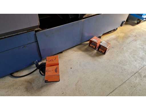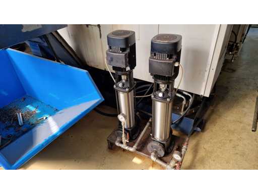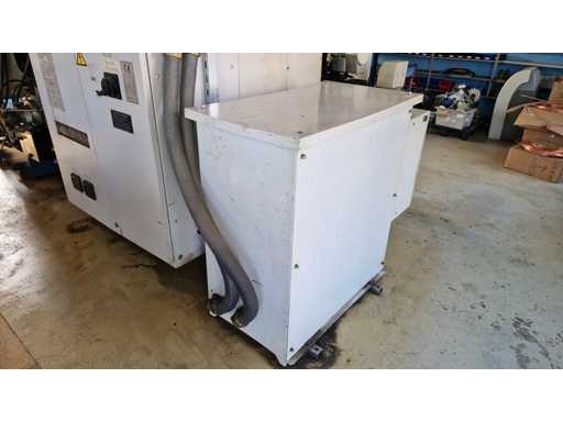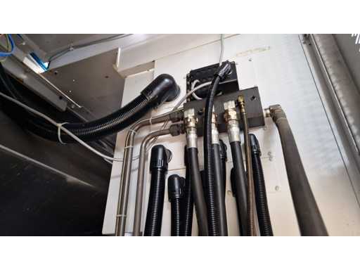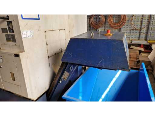 Gestion du liquide de refroidissement / des copeaux : Pompe de refroidissement et convoyeur à copeaux présents (visibles).