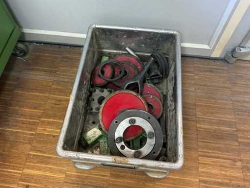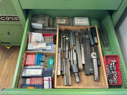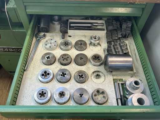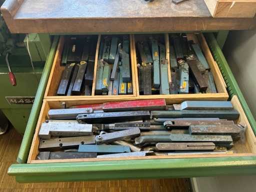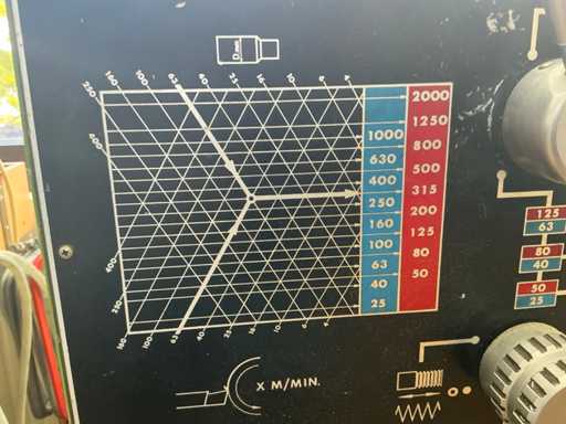 Longueur de tournage env. 800 mm, affichage numérique Acu-Rite, support de tournage en acier Multifix, y compris armoire d’accessoires : pince à serrage rapide, roues de changement, support en acier.