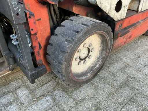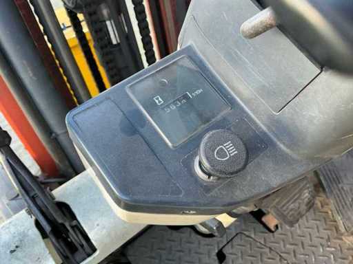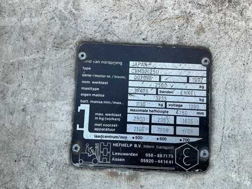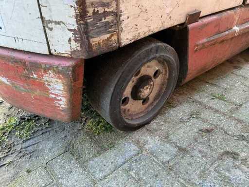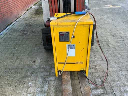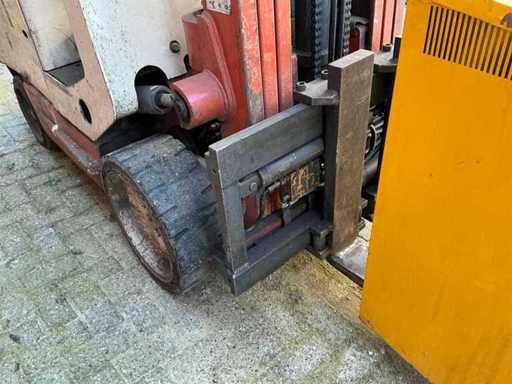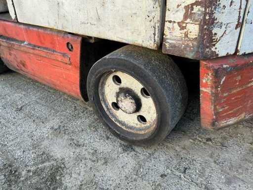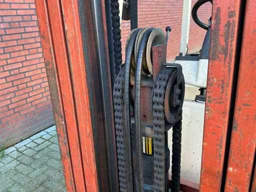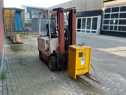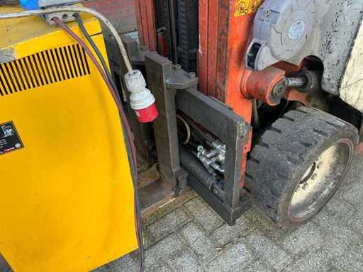 Équipé de : chargeur de batterie, levier de vitesses latéral, fourches réglables, barre de remorquage, colonne de direction réglable, mât triplé, pneus en caoutchouc plein,