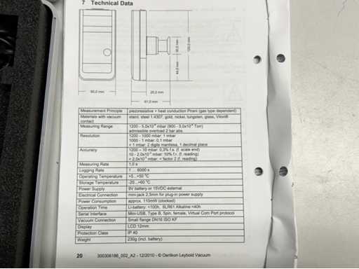 Jauge à vide Pirani portable avec enregistreur de données, KF DN16, dans un boîtier de transport