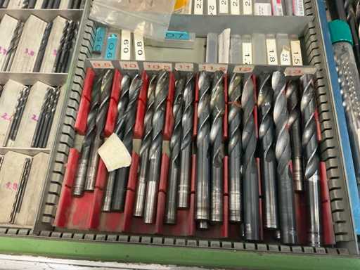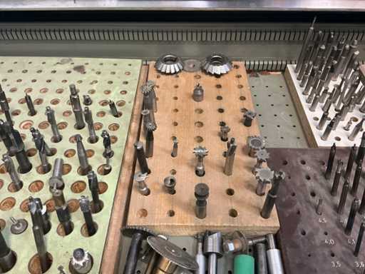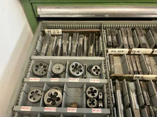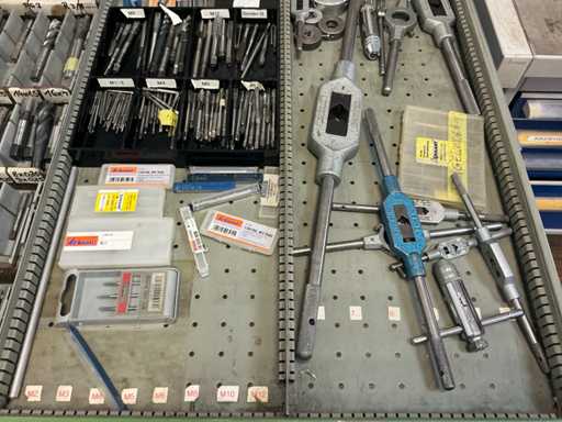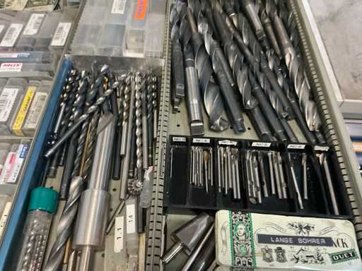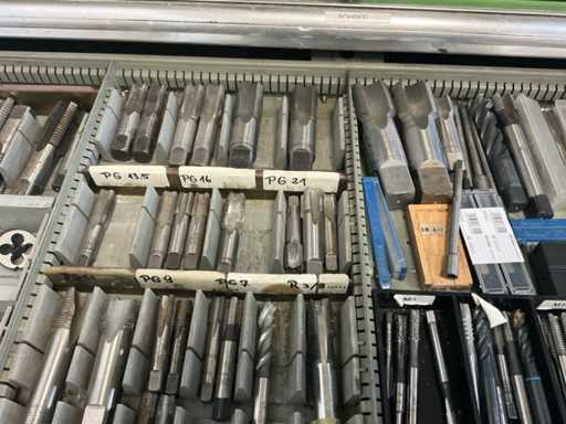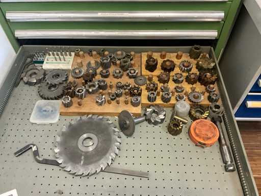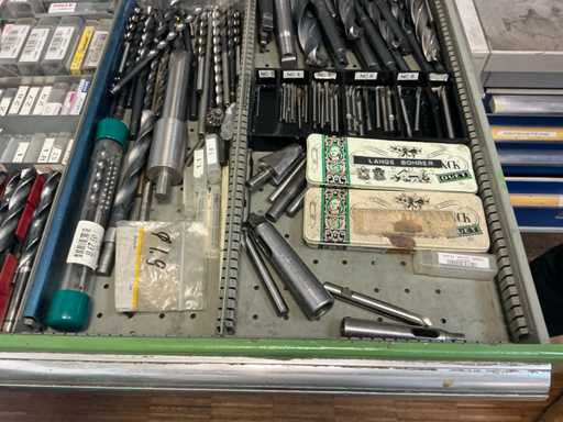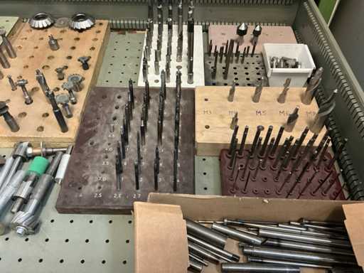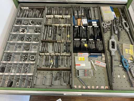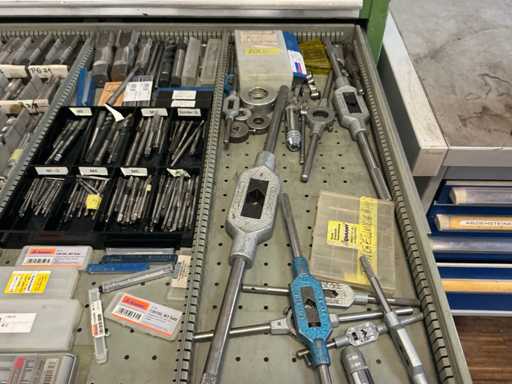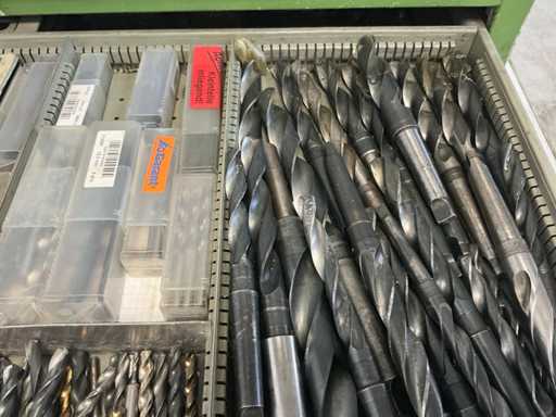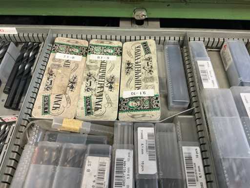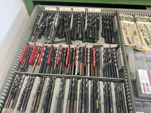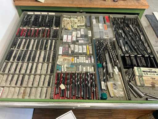 9 tiroirs, Contenu : foret hélicoïdal, fraise, taraud, fer à couper, coupe-disque
