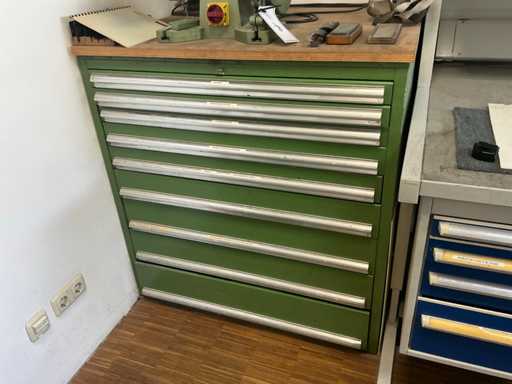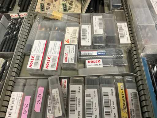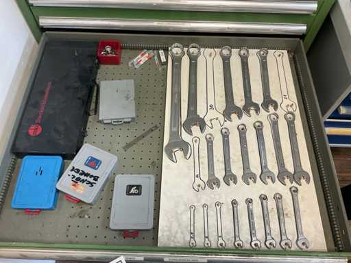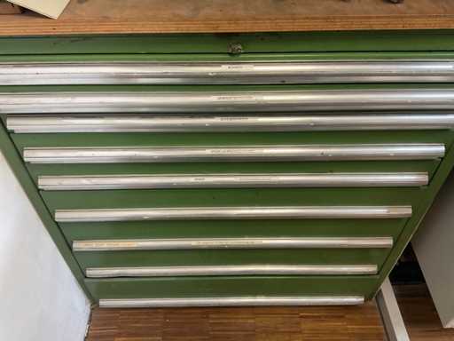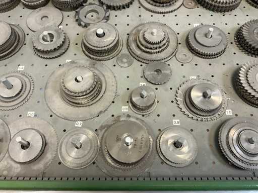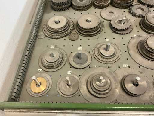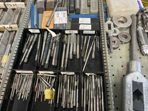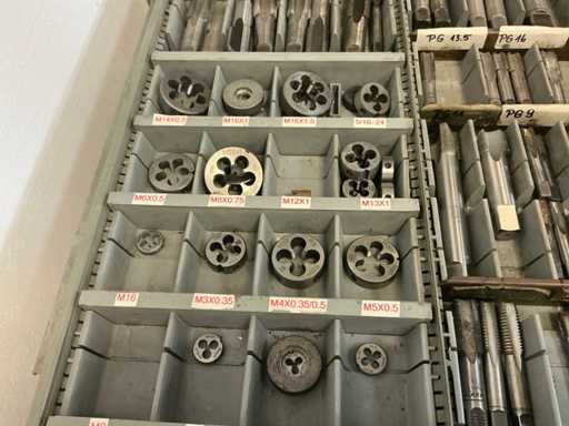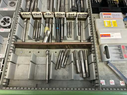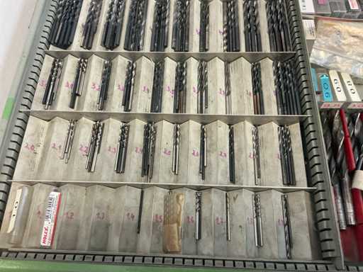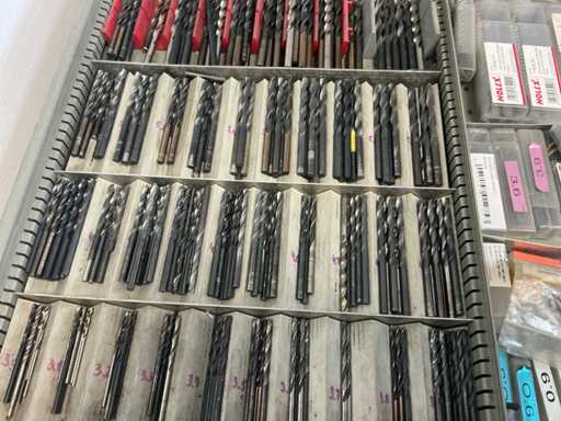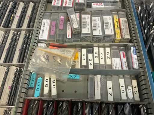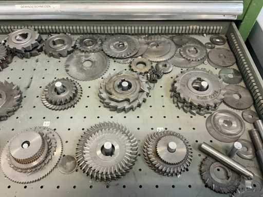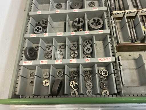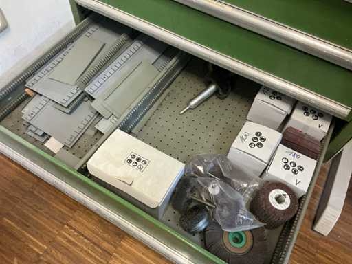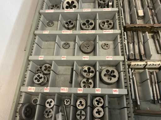 9 tiroirs, Contenu : foret hélicoïdal, fraise, taraud, fer à couper, coupe-disque