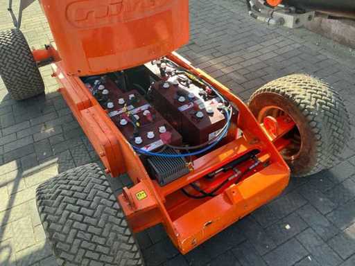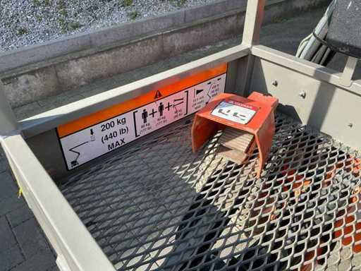 Caractéristiques : largeur de châssis de 1,5 m, zéro émission, fonctionnement entièrement électrique, performance propre et silencieuse pour un usage intérieur, charge de travail sûre (SWL) de 225 kg, capacité pour deux personnes plus des outils, batteries Trojan sans entretien, hauteur de travail 12,1 m, largeur de la machine 1,5 m, profondeur de cage 0,85 m, largeur de cage 1,2 m, portée horizontale 6,4 m, rayon de braquage 3,3 m, fonctionnement proportionnel,