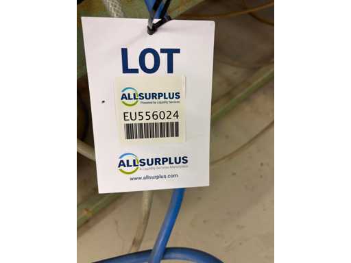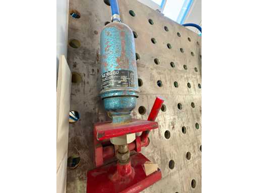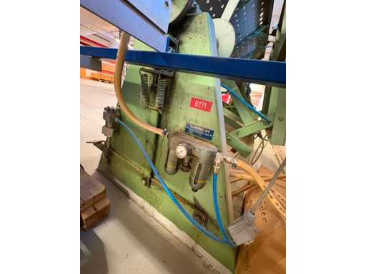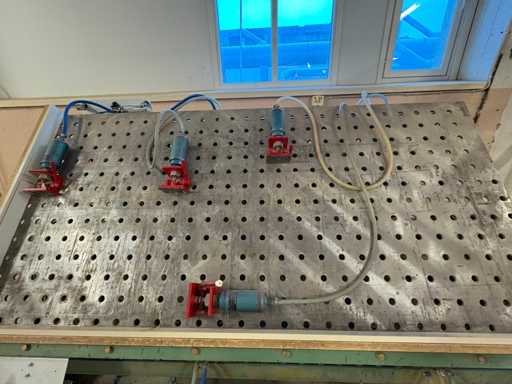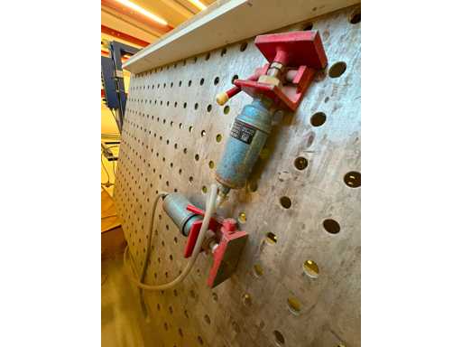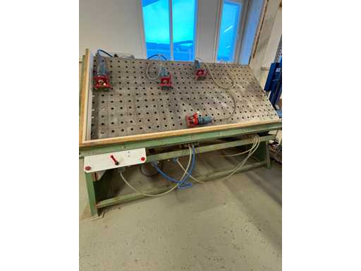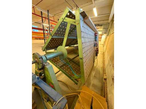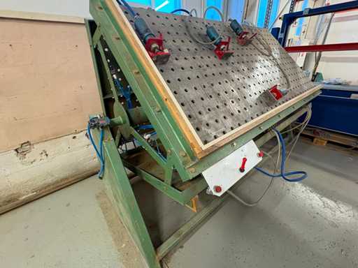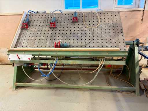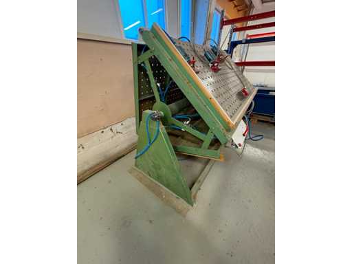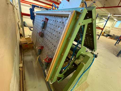 Presse pneumatique à carcasse - presse pivotante à trois faces, plaques de 1 900 mm x 950 mm, deux côtés 4 têtes pneumatiques, un côté 5 têtes pneumatiques
