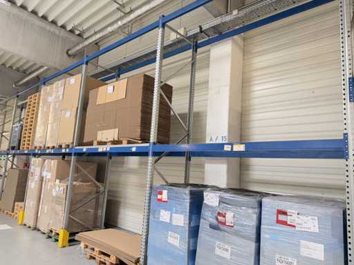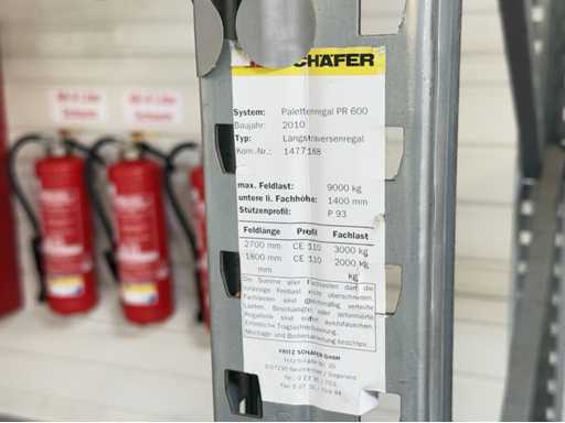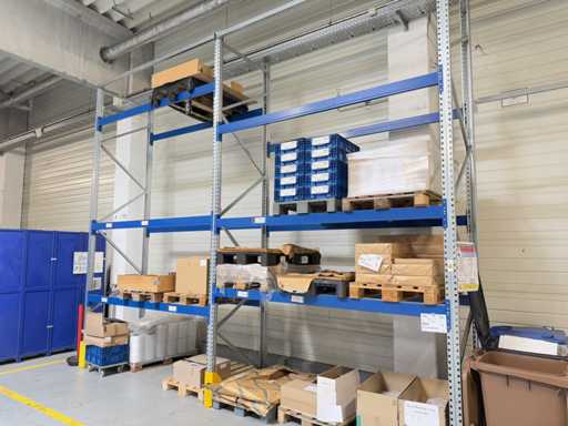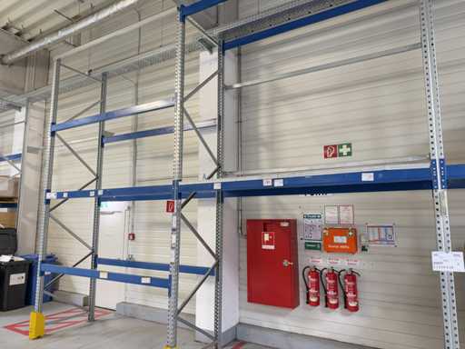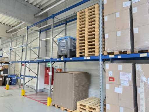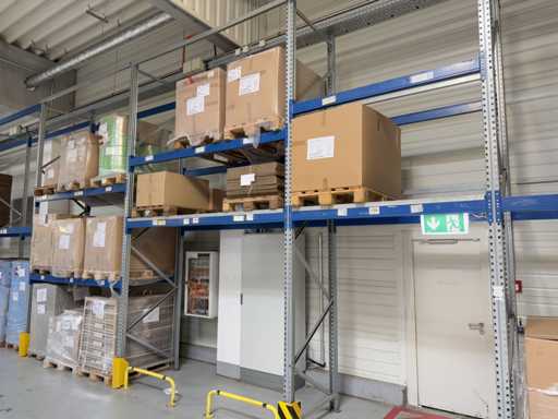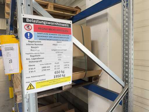 un total d’environ 46 mètres linéaires ; Profondeur de l’étagère : 1050 mm ; Charge maximale de la baie : 9000kg ; Charge par étagère à la longueur de la baie 2,7 m : 3000 kg ; Charge de l’étagère à 1,8 m de longueur de baie : 2000 kg ; Pour plus de détails, voir les photos des plaques signalétiques ; complètement sans contenu ;