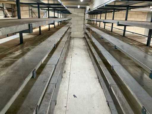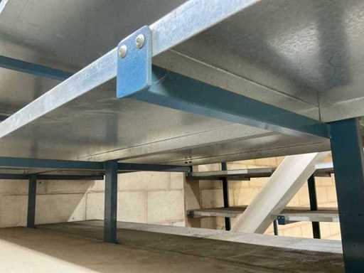 2 racks double d’entrepôt (875 cm de longueur, 200 cm de hauteur, 90 cm de profondeur) avec 6 rangées d’étagères.