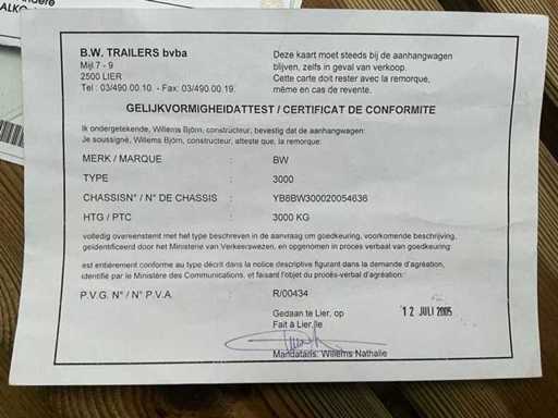 Marque : BW (B.W. Trailers bvba, Lier)