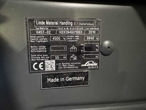 Service 2016 + UVV 11/2026 Linde H45T 4,500kg 3,+4. Fourche de réglage de soupapes Élévateur à gaz Chariot élévateur AC Klima H50