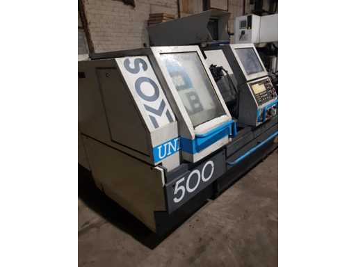 SOMAB - UNIMAB-500 - Tour parallèle à commande numérique avec banc plat, poupée fixe A1-8, variateur et capacités de chariotage longitudinal et transversal - 1989