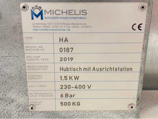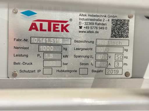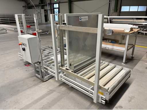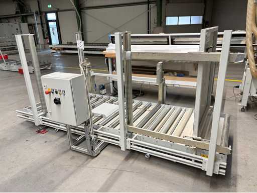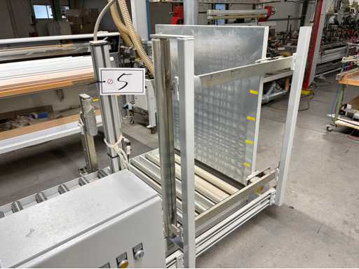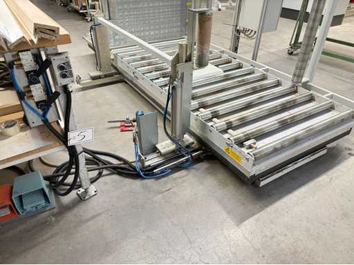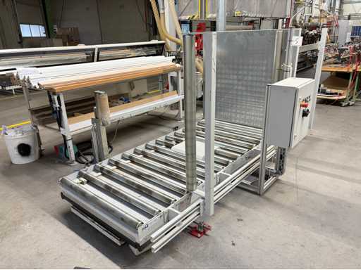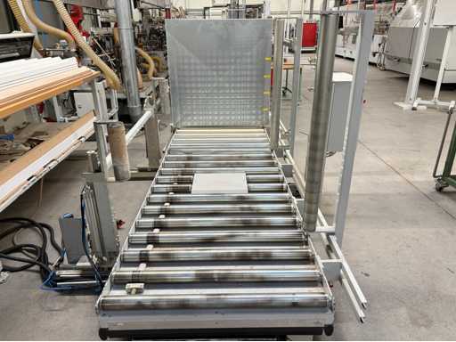 N° de machine 10.141.5118, capacité de charge max. env. 1000 kg, largeur du rouleau env. 980 mm, longueur de la table élévatrice max. env. 3000 mm, paroi du déflecteur réglable (L’article est en l’état actuel et non testé. L’article est vendu par la fondation !)