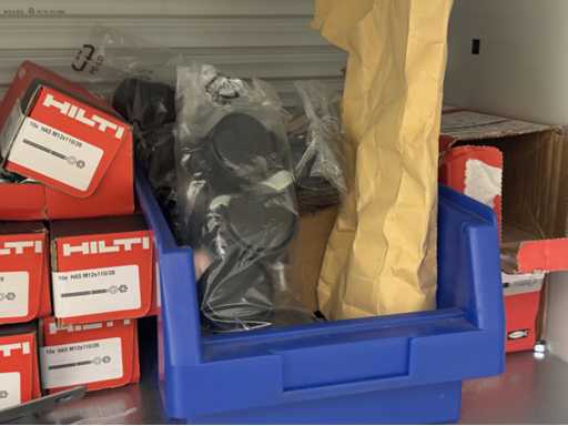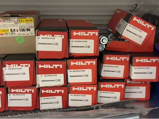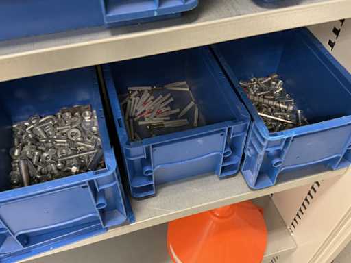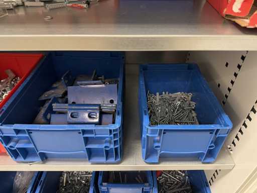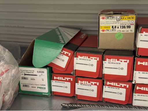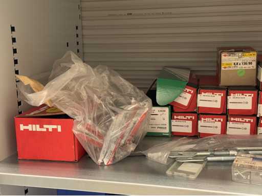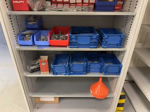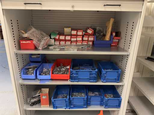 Meuble avec contenu : assortiment de vis, principalement fabriqués par Hilti ; Pour plus de détails, voir les photos des plaques signalétiques ;
