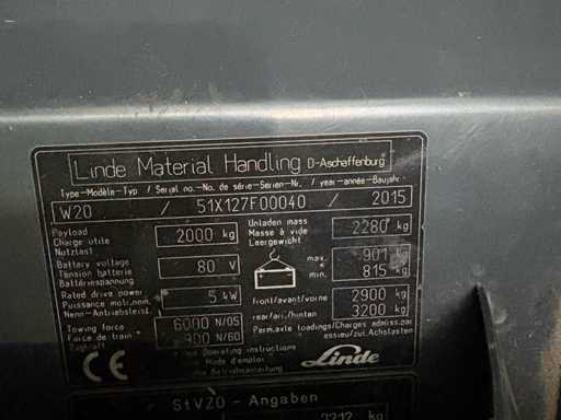 Caractéristiques techniques – Linde W20 (camion à plate-forme électrique)