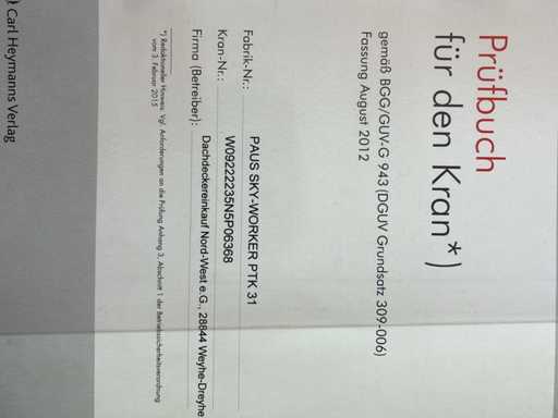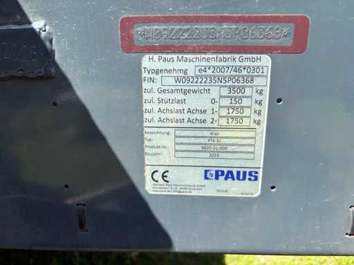 À vendre est une grue sur remorque Paus PTK 31 avec un équipement spécial complet et un excellent état. L’appareil est immédiatement prêt à l’emploi, bien entretenu, techniquement irréprochable et provient du premier propriétaire. Parfaitement adapté aux couvreurs, aux charpentiers, aux installateurs solaires, aux constructeurs de halls et aux prestataires de services d’installation.