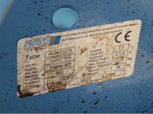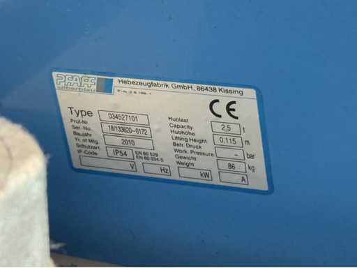 Année de fabrication : 2010, Capacité de levage : 2,5 t et Année de construction : 2012, Capacité de levage : 2,5 t. Pour plus de détails, voir les photos de la plaque signalétique.