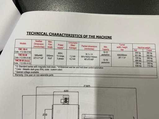 5,5 kW, maximum 12 à 16 par minute, 450 heures de fonctionnement, tapis roulant inclus.