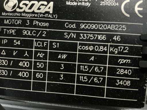 Équipé d’un moteur Soga 90LC/2 230 volts/3 ch