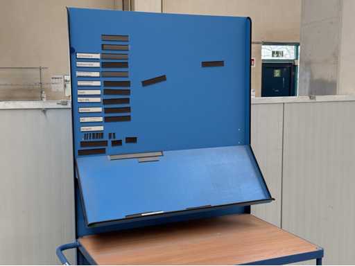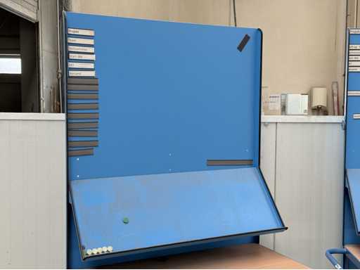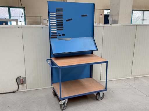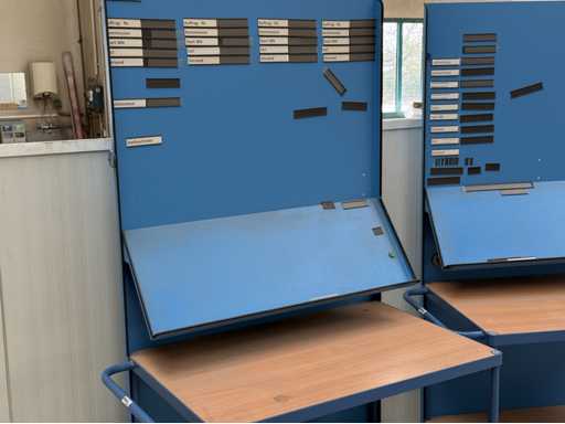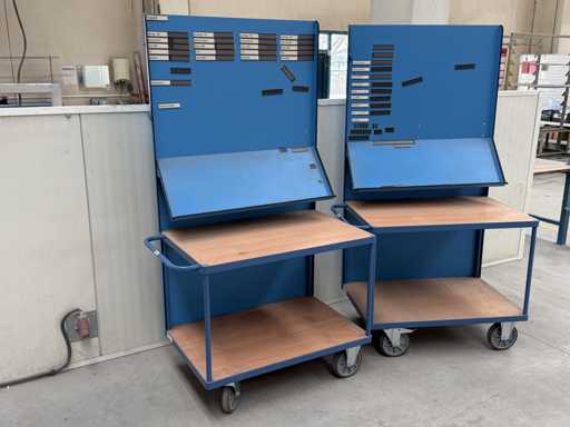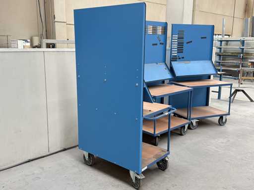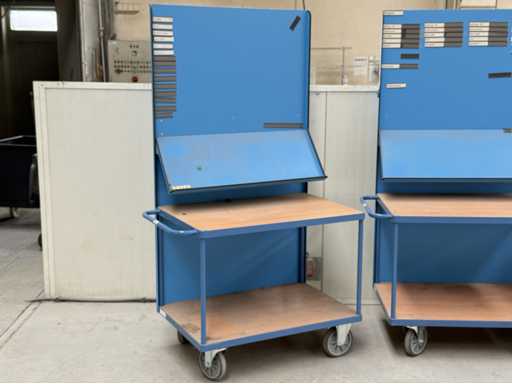 3 carrelli con dimensioni 1200x700x2100 ciascuno, dotati di mensola e lavagna, fanno FETRA, anno di costruzione 2021, vedi le foto per maggiori dettagli
