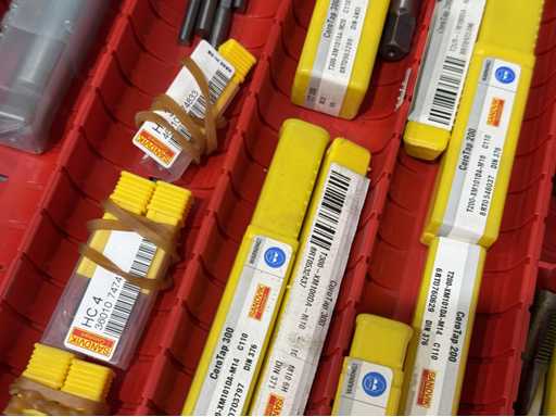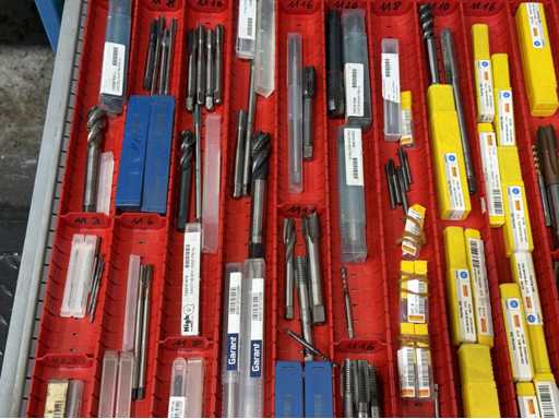 Contenuto cassetto: assortimento di rubinetti di diversi diametri e dimensioni