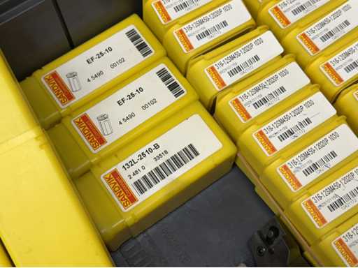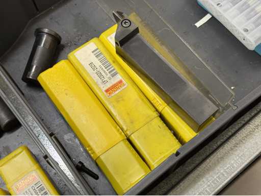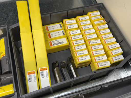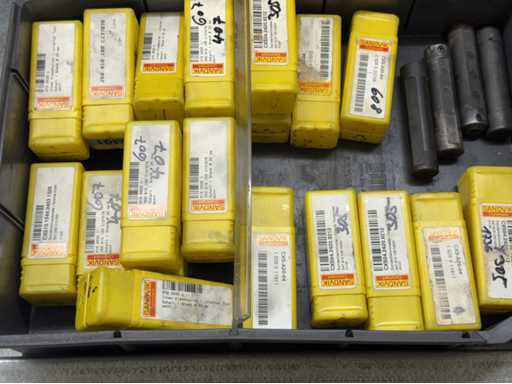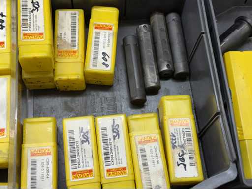 Vasto assortimento di inserti, punte, principalmente realizzati da Sandvik, per maggiori dettagli vedere le foto delle targhette