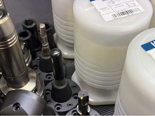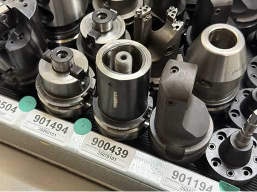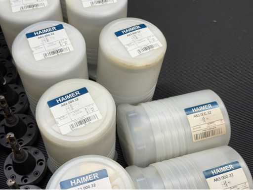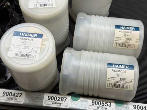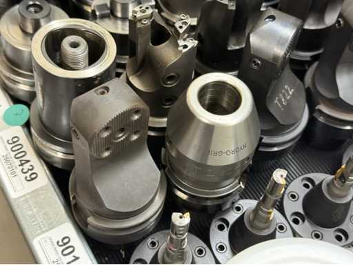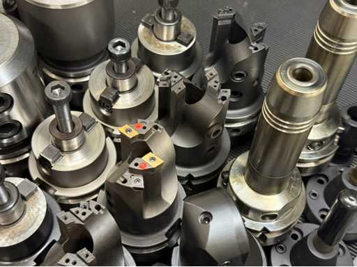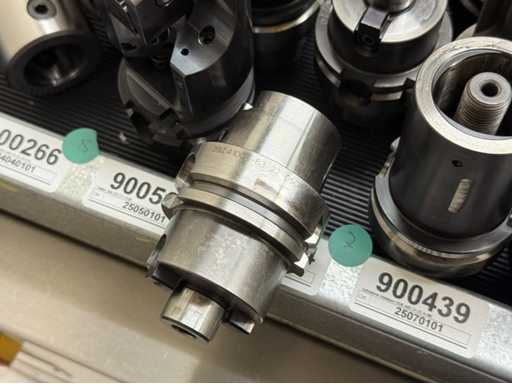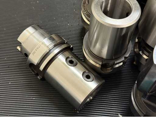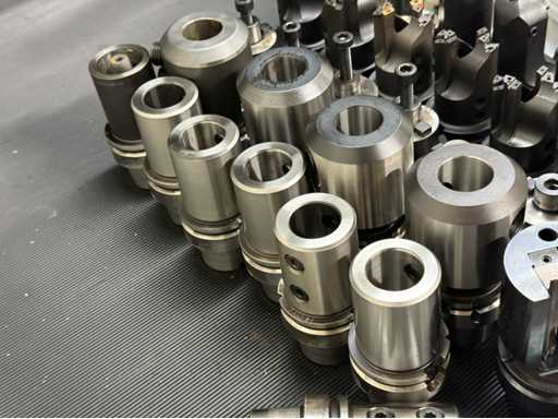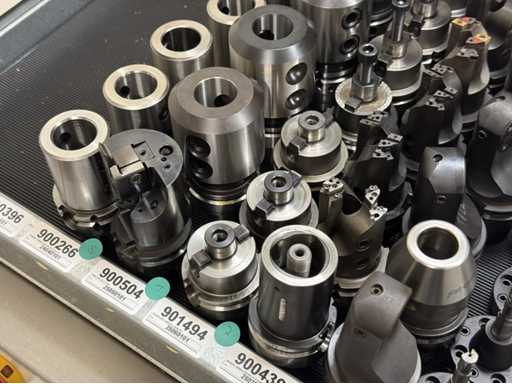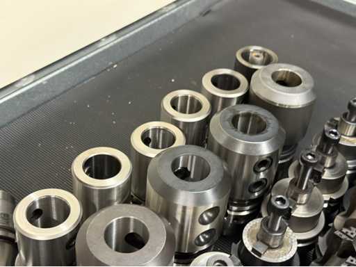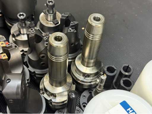 Assortimento di portautensili HSK-63, in parte dotati di utensili, adattatori vari, vedi foto per maggiori dettagli