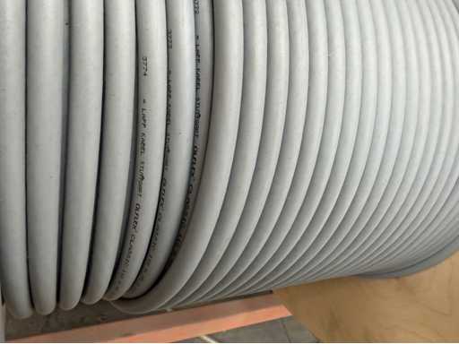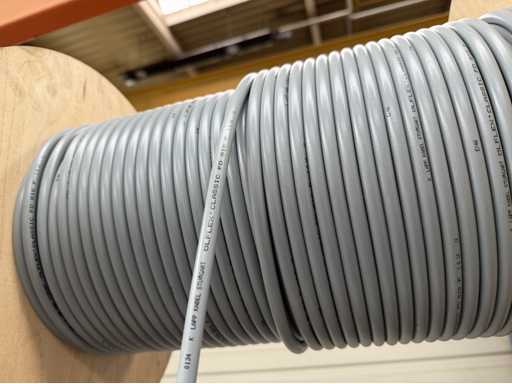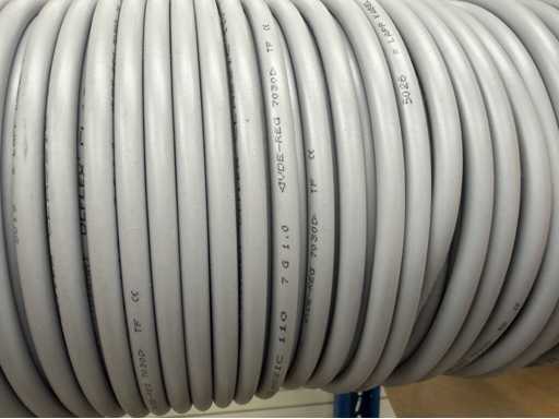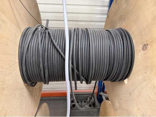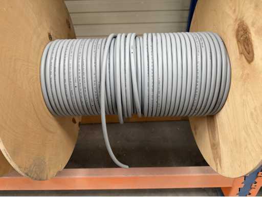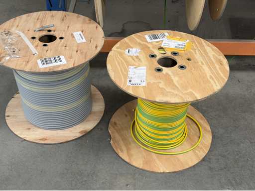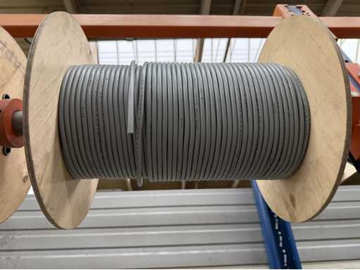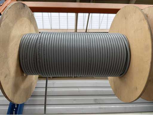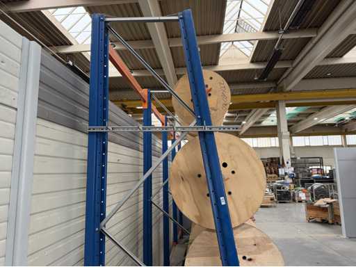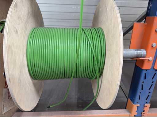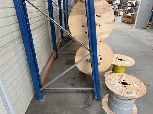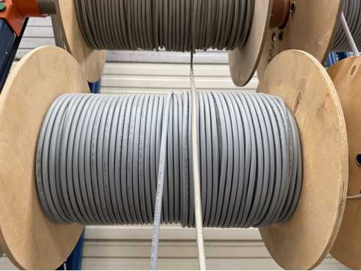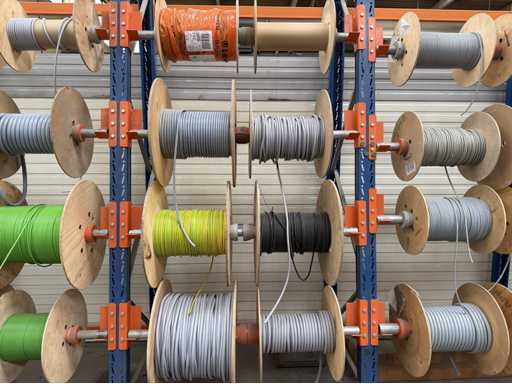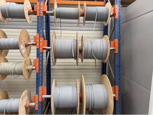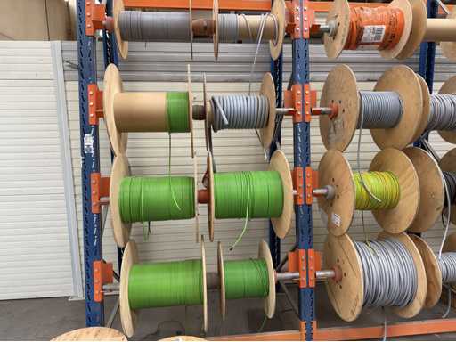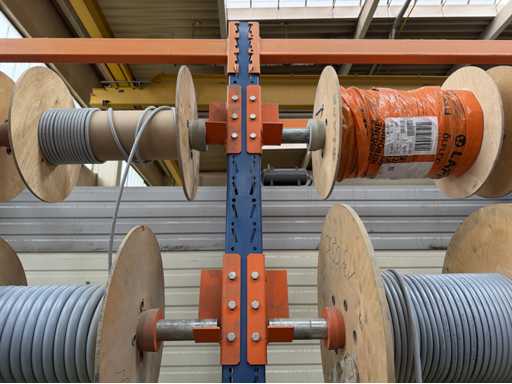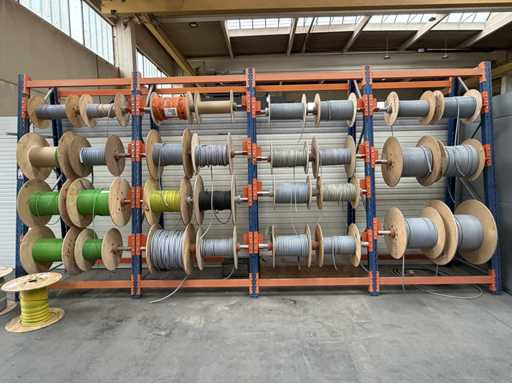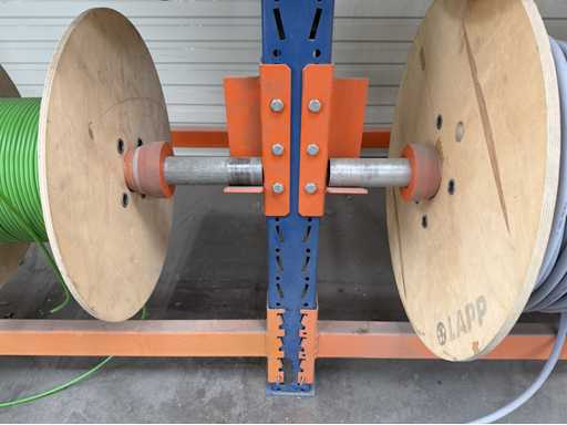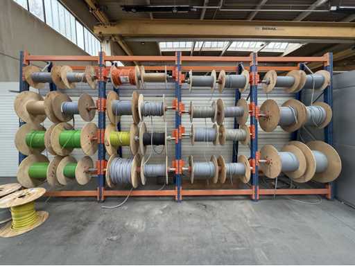 Rack per tamburi a cavo con bobine per cavi; un totale di quattro unità con tamburi per cavi; per maggiori dettagli sui cavi si vedano le foto delle targhe con il nome