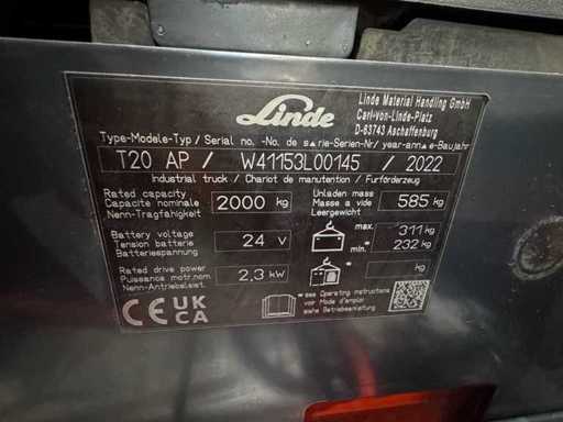 05/2024 Linde T20AP EVO 2.000kg Piattaforma Stacker Camion Transpallet 2.981 ore
