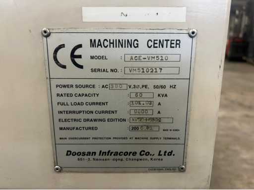2006 Doosan ACE VM-510 Centro macchine universali CNC