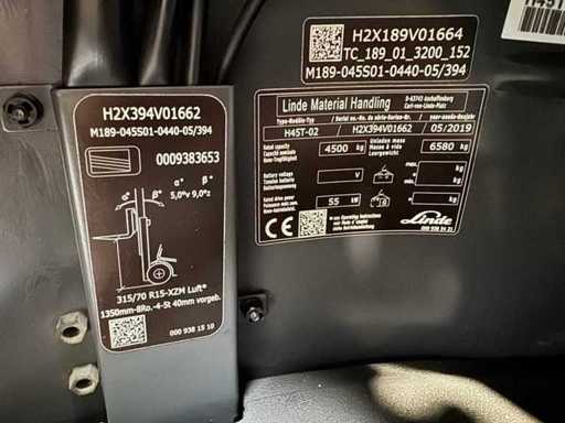 2019 Servizio + UVV 02/2027 Linde H45T EVO 4.500kg Carrello elevatore a gas 3.+4. Regolatore forchetta Climatizzatore Telecamera 7.847 ore H50