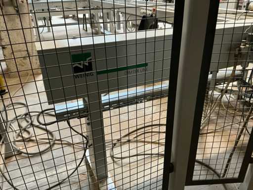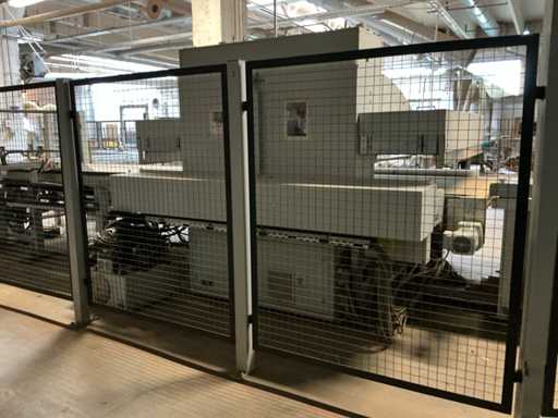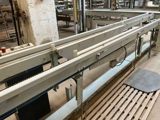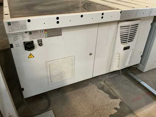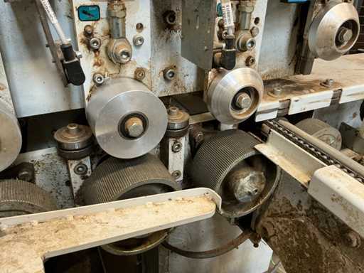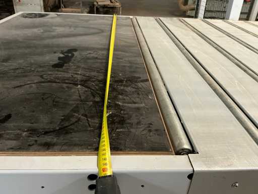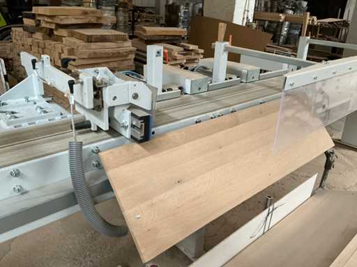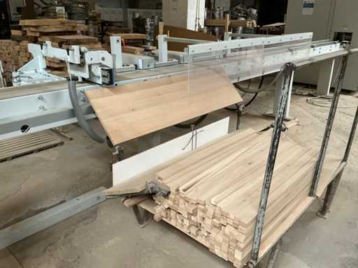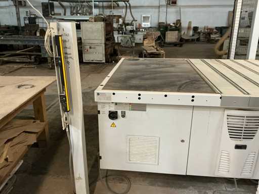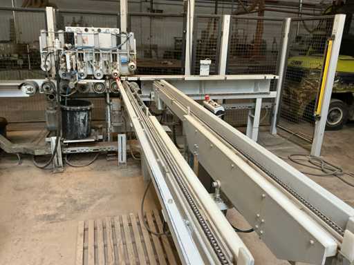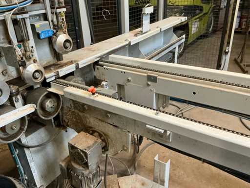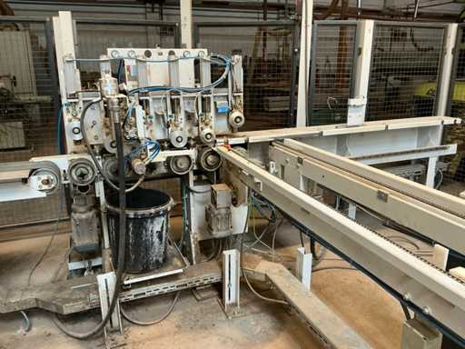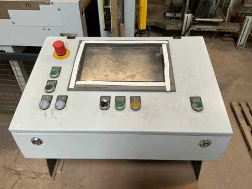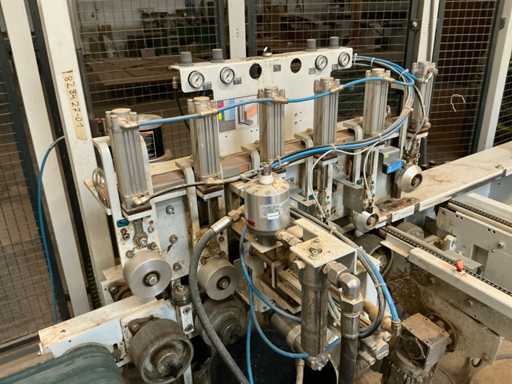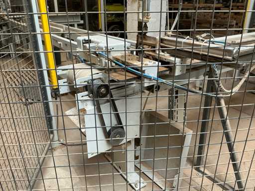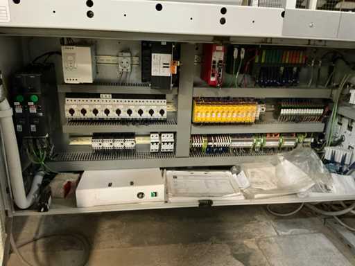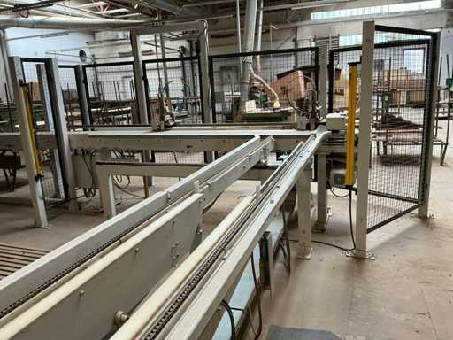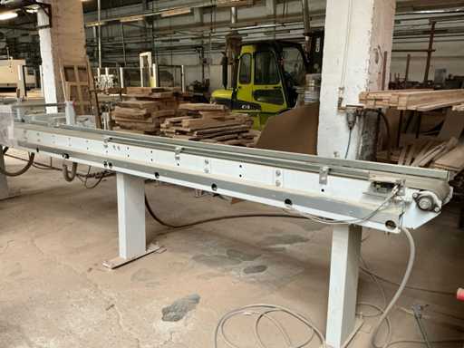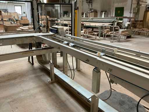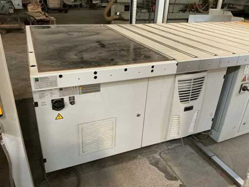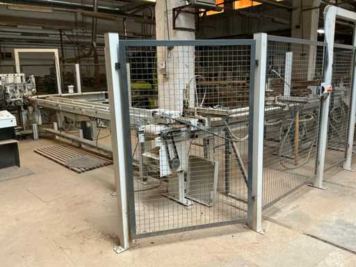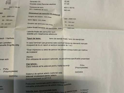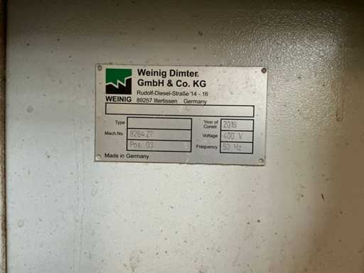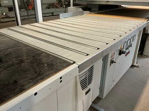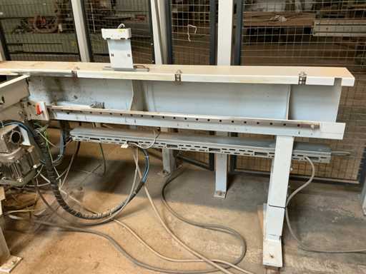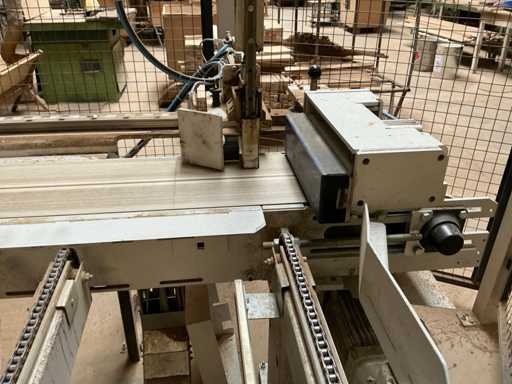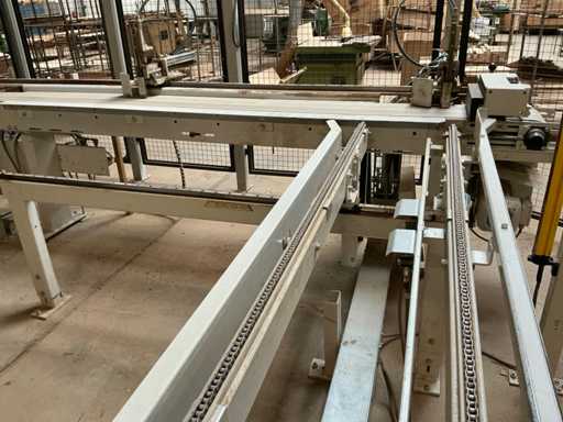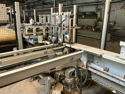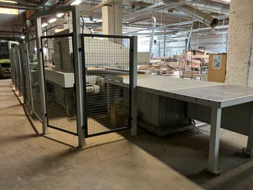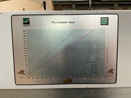 Osservazioni / dotazioni aggiuntive: Pressa per incollaggio ad alta frequenza Weinig Dimter ProfiPress L II 2500 HF, progettata per la giunzione industriale di lamelle e pannelli. Include unità idraulica, generatore HF, armadio di controllo, nastri di ingresso/uscita e custodia di sicurezza. Adatto per applicazioni su legno tenero e duro, con applicazione automatica dell'adesivo e controllo del ciclo di pressatura. Prodotto in Germania, anno di costruzione 2019.