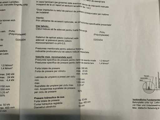 Pressione di pressatura: fino a 1,0 N/mm² (legno tenero) / 1,4 N/mm² (legno duro)