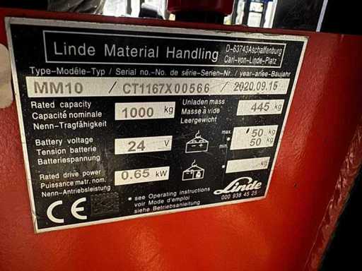 2020 Linde MM10 1.000kg Duplex Free Lift Elevatore Elettrico Solo 41 Ore